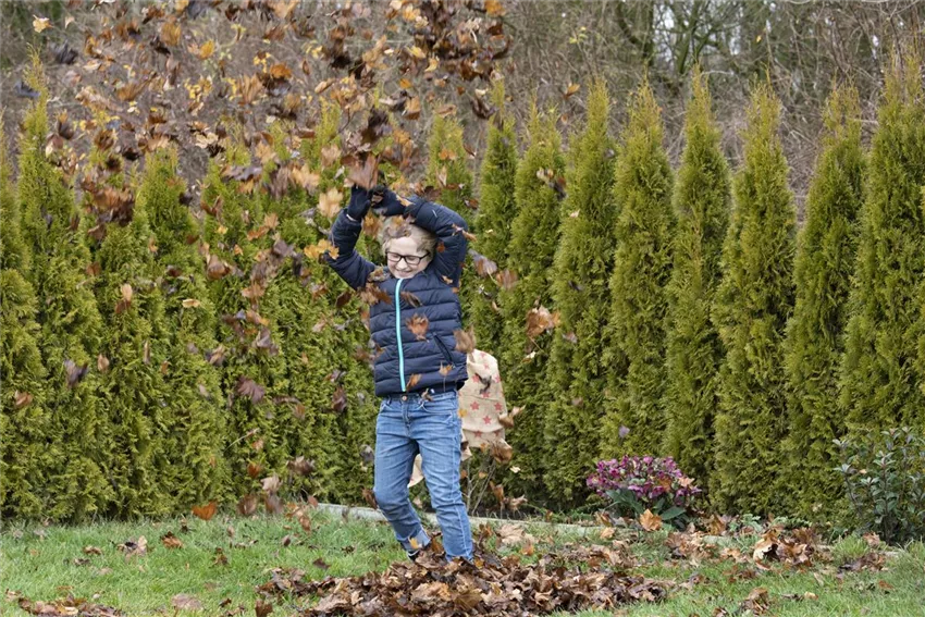Das Laub bedeckt im Herbst das ganze Grundstück. Nicht nur die eigenen Bäume werfen die Blätter ab, sondern auch Straßenbäume und Gehölze vom Nachbargrundstück. So entsteht eine dicke Laubdecke, mit der sich allerhand anfangen lässt.
