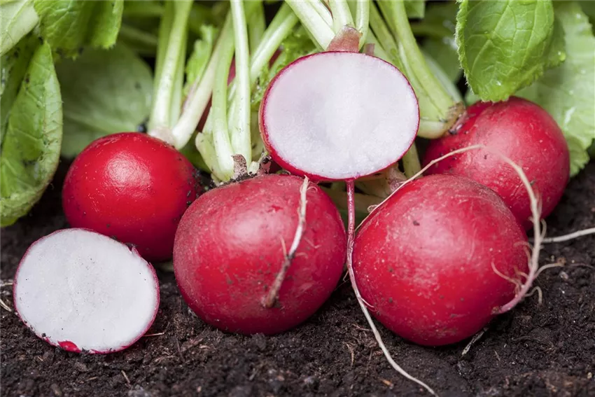 Radieschen und Rettich vertragen sich gut mit Bohnen, Erbsen, Mangold, Karotten, Kohl, Spinat, Tomaten.