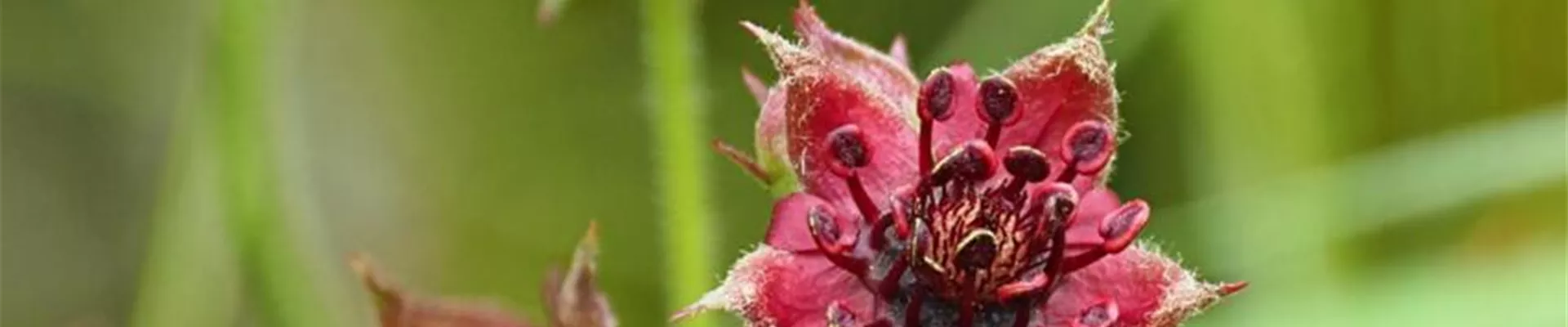 Das Sumpf-Blutauge (Comarum palustre) wächst bevorzugt im Randbereich von Hochmooren und auf schlammigen, offenen Böden von Niedermooren, aber es kommt auch in nährstoffarmen Gräben sowie am Ufer stehender oder langsam fließender Gewässer vor. Von Mai bis August zieht seine auffällig purpurne, braune bis blutrote Färbung dort nicht nur unsere Blicke auf sich. Eine Vielzahl an Insekten, vor allem Wildbienen wie Baum-, Stein und Ackerhummeln sowie Fliegen, werden von ihr angelockt und für den Besuch mit zuckerreichem Nektar und Pollen belohnt. Das Sumpf-Blutauge gehört zur Familie der Rosengewächse, zu welcher nicht nur die namensgebenden Rosen, sondern auch viele Obstsorten wie Apfel oder Erdbeere zugeordnet werden. Stacheln oder essbare Früchte sind bei der Blume des Jahres aber nicht zu finden. Seine 20 bis 70 cm langen Stängel sind oft flaumig bis zottig behaart, die Blätter bestehen aus 3-5 unpaarig zusammengesetzten Blattfiedern. Während die Früchte heranreifen, erinnert die aufgequollene Blütenachse tatsächlich an eine Erdbeere. Es werden etwa 1,5 mm große Nüsse ausgebildet, die dank ihrer Hakenspitze zum Beispiel im Gefieder von Wasservögeln hängenbleiben und fortgetragen werden. Die Samen sind erstklassige Schwimmer und können bis zu 12 Monate an der Wasseroberfläche treiben, bis sie an einem neuen Wuchsort angeschwemmt werden. Das Sumpf-Blutauge breitet sich zudem über Erdsprosse aus. Diese sogenannten Rhizome werden bis zu einem Meter lang und wachsen untergetaucht im Wasser oder mit Vorliebe durch offenen, schlammigen Boden.