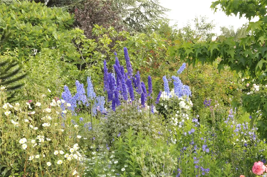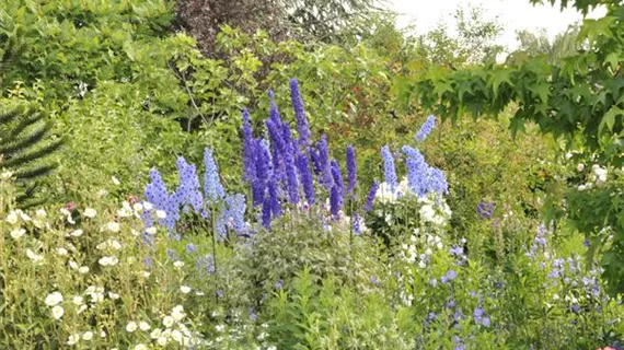 Das Blumenbeet im Garten braucht zwei oder drei Pflanzen als optischen Mittelpunkt. Am besten sucht man sie zuerst aus und wählt dann die passenden Ergänzungen. Für den Naturgarten ist Rittersporn eine gute Idee, für den Bauerngarten bietet sich die Pfingstrose an. Wer’s extravagant mag, greift zur Silberdistel. Feurige Töne kommen mit dem Klatschmohn ins Blumenbeet im Garten. Eine andere Methode empfiehlt, das Beet stufenförmig anzulegen. Man teilt es in große, mittlere und kleine Pflanzen auf. Das ist geschickt, wenn es an einen Zaun grenzt.