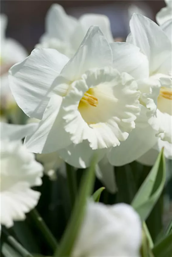 Vor allem zur Osterzeit finden sie reißenden Absatz. Narzissen sind in unseren Gärten schon seit Mitte des 16. Jahrhunderts bekannt. Die hohlen Stängel tragen an ihrem Ende eine einzelne oder mehrere Blüten in Weiß, Gelb oder orange. Durch Züchtung entstanden viele unterschiedliche Formen. Die Stängel sondern nach dem Schnitt ein Sekret ab, das bei anderen Blüten in der Vase zum Absterben führen kann. Verzichten Sie deshalb auf einen frischen Anschnitt – oder lassen Sie Narzissen unter sich.