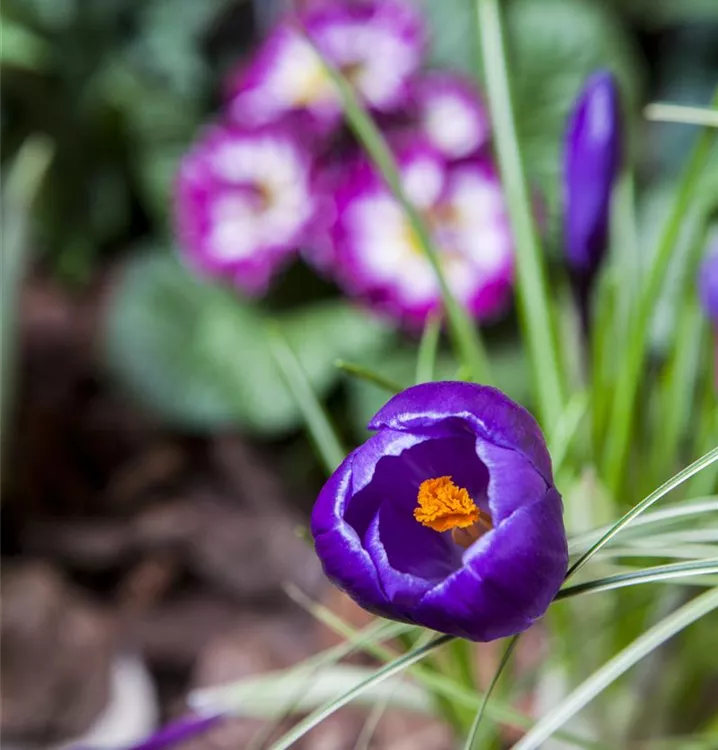 Der Frühlings-Krokus (Crocus vernus) blüht über Monate hinweg. Je nach Sorte, erscheinen die dekorativen Blüten in den Farben Weiß, Gelb, Blau und Lila. Bevorzugt wird ein sonniger bis halbschattiger Standort und eine durchlässige Erde.