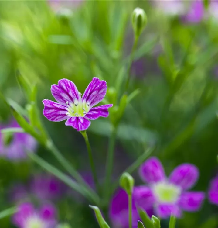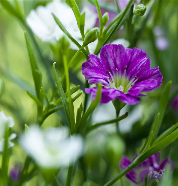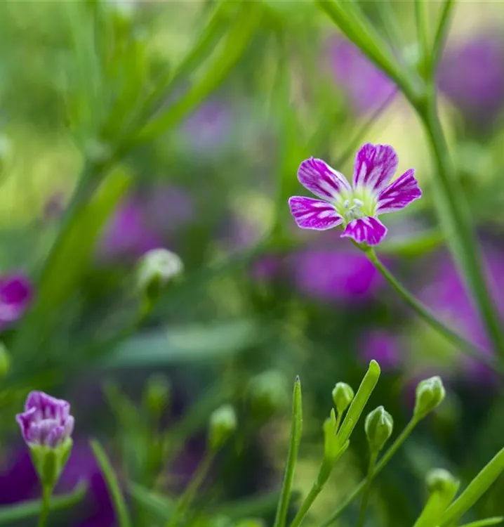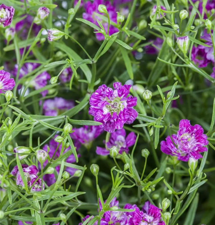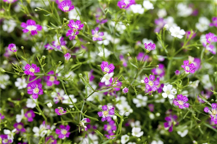 Das Mauer-Gipskraut (Gypsophila muralis) ist eine beliebte Pflanze für den Balkon. Die unzähligen Blüten erscheinen, je nach Sorte, in verschiedenen Farben die ganze Saison hindurch. Ein sonniger Standort und ein durchlässiges Substrat werden bevorzugt.