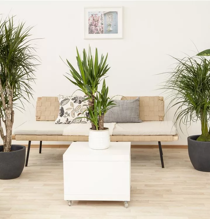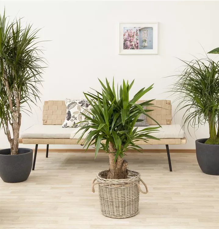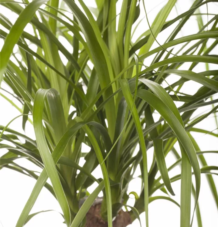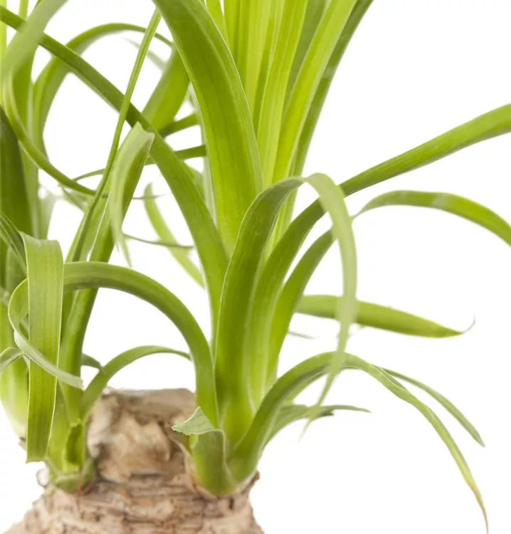 Der Elefantenfuß (Beaucarnea recurvata) trägt mittelgrüne, lineale, ganzrandige Blätter. Diese sukkulente Pflanze gedeiht am besten an einem sonnigen Standort.