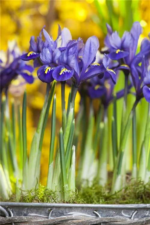 Die Zwiebel-Schwertlilie (Iris reticulata) ist eine aufrechte, kompakte, rhizombildende Staude, die von Februar bis März blaue Blüten mit einem angenehmen Duft bildet. An einem sonnigen Standort mit durchlässigem, lockerem Boden erreicht sie gewöhnlich eine Höhe von ca. 15 cm und wird ca. 8 cm breit. Die Zwiebel-Schwertlilie ist gut frostverträglich.