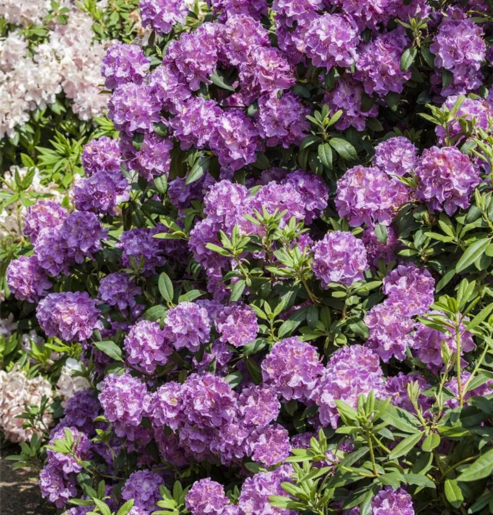 Der Rhododendron-Hybride 'Alfred' setzt schöne Akzente gemeinsam mit: