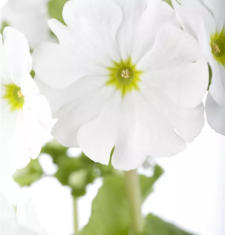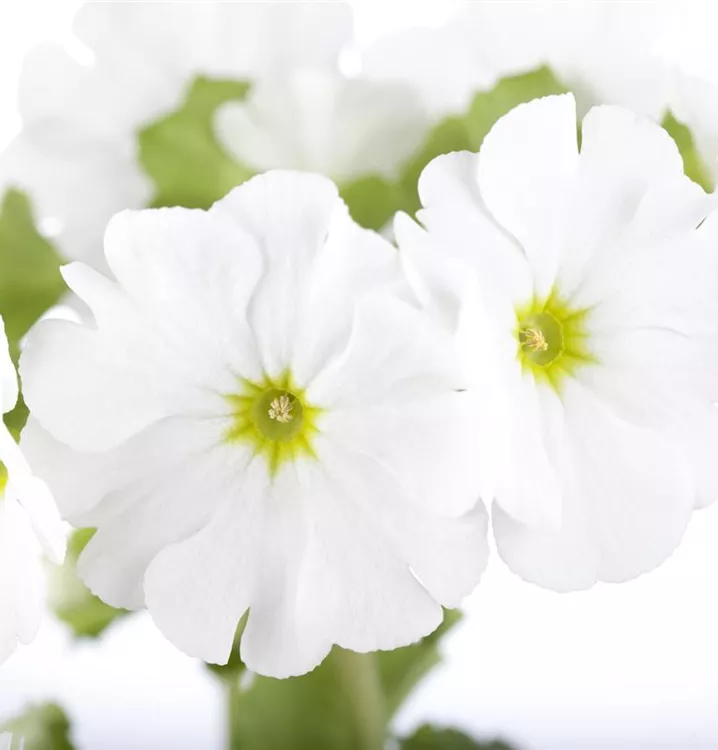 Die immergrünen Blätter der Becher-Primel 'Touch Me'® sind mittelgrün, eiförmig, gekerbt.