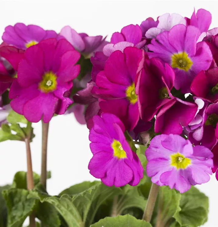 Die Becher-Primel blüht munter vom März bis in den Oktober hinein. Sie präsentiert ihre schalenförmigen Blüten in einem dunklen Ton aus dem roten Farbtopf bis zu Violett und einem reinen Weiß. Sie gehört zu den bunten Blühern, die als Erste ihre Köpfchen aus der Frühlingserde strecken. Die Horst bildende pflanzliche fleißige Biene ist eine wunderbare Ampelpflanze, die ihrem Besitzer aber auch alles andere von Zimmerpflanze bis Wintergartendekoration geben kann.
