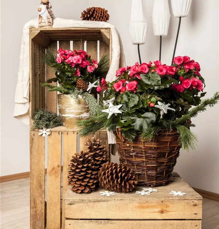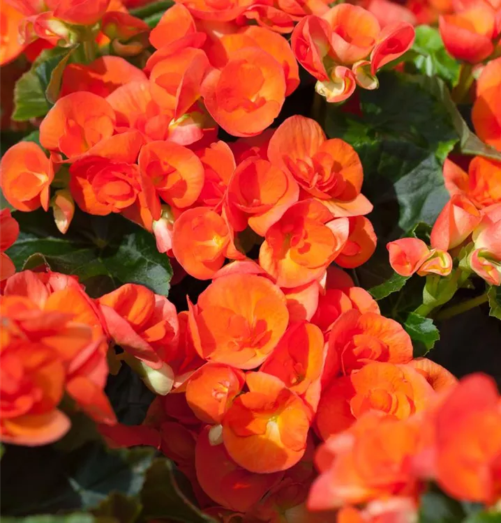 Die Begonie (Begonia elatior) blüht über Monate hinweg. Je nach Sorte, erscheinen die dekorativen Blüten in den Farben Rot, Rosa, Gelb und Orange. Bevorzugt wird ein sonniger bis halbschattiger Standort und eine durchlässige Erde.
