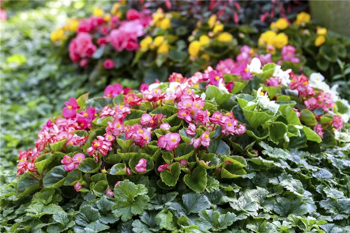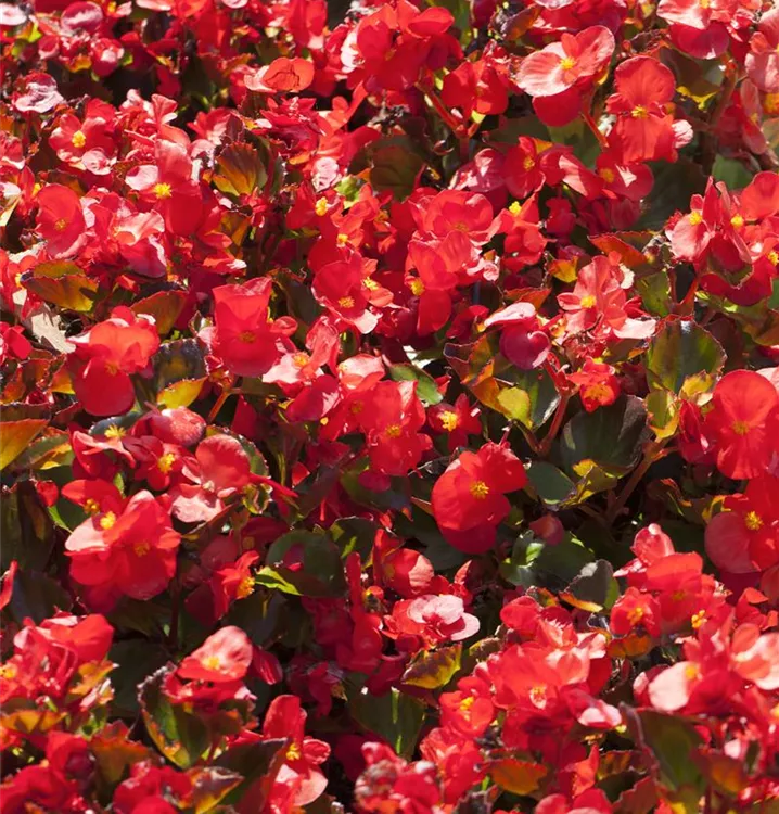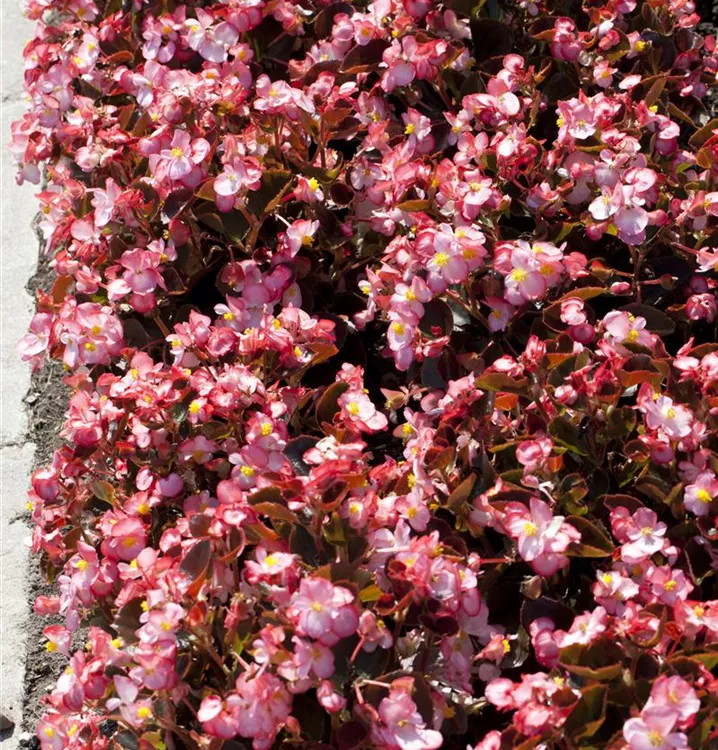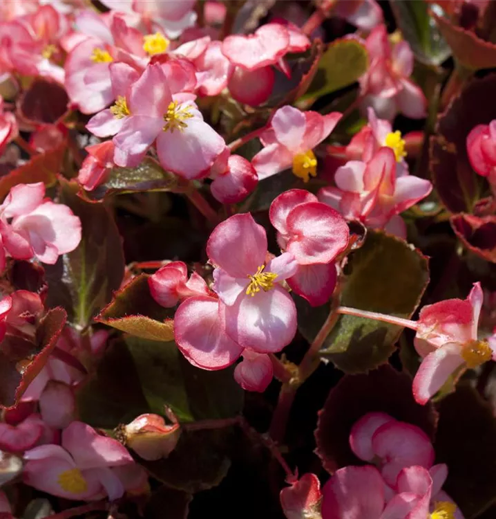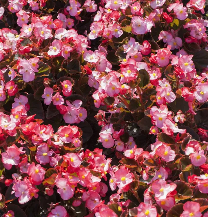 Die Eis-Begonie (Begonia semperflorens) ist eine beliebte Pflanze für den Balkon. Die unzähligen Blüten erscheinen, je nach Sorte, in verschiedenen Farben die ganze Saison hindurch. Ein sonniger bis halbschattiger Standort und ein durchlässiges Substrat werden bevorzugt.