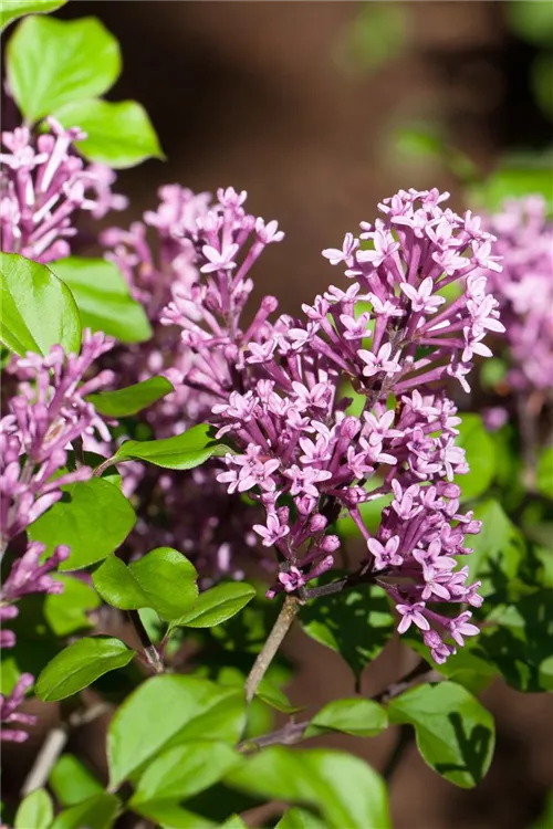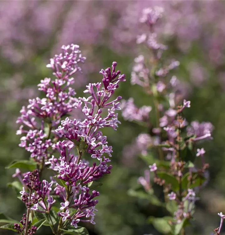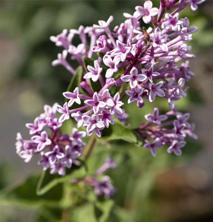 Die lilafarbenen Blüten des Meyer's Flieder erscheinen in Rispen von Juni bis Juli. Diese sind stark duftend.