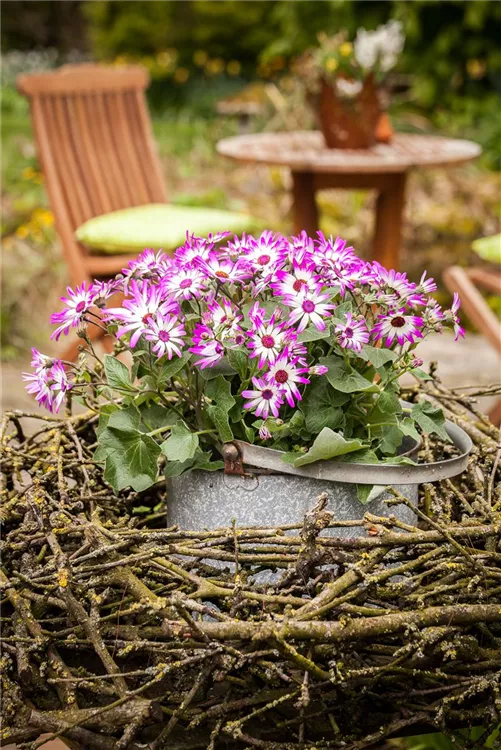 Die Aschenblume (Pericallis cruentus) ist eine beliebte Pflanze für den Balkon. Die unzähligen Blüten erscheinen, je nach Sorte, in verschiedenen Farben die ganze Saison hindurch. Ein sonniger bis halbschattiger Standort und ein durchlässiges Substrat werden bevorzugt.