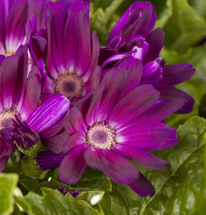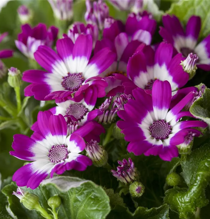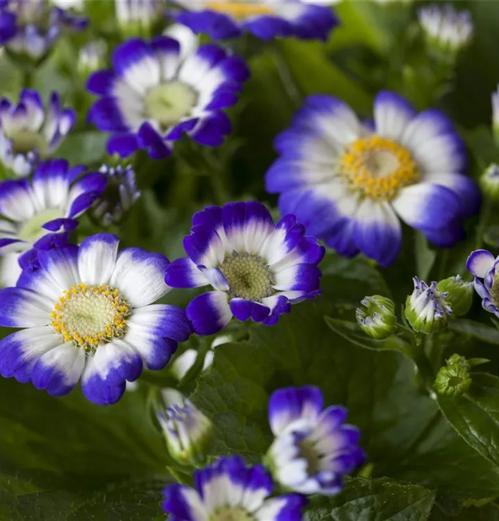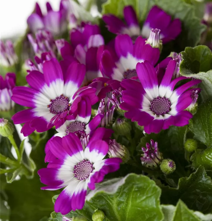 Je nach Sorte, bildet Pericallis cruentus Blüten in verschiedenen Farben. Bei richtiger Pflege Nachblüte von August bis September.