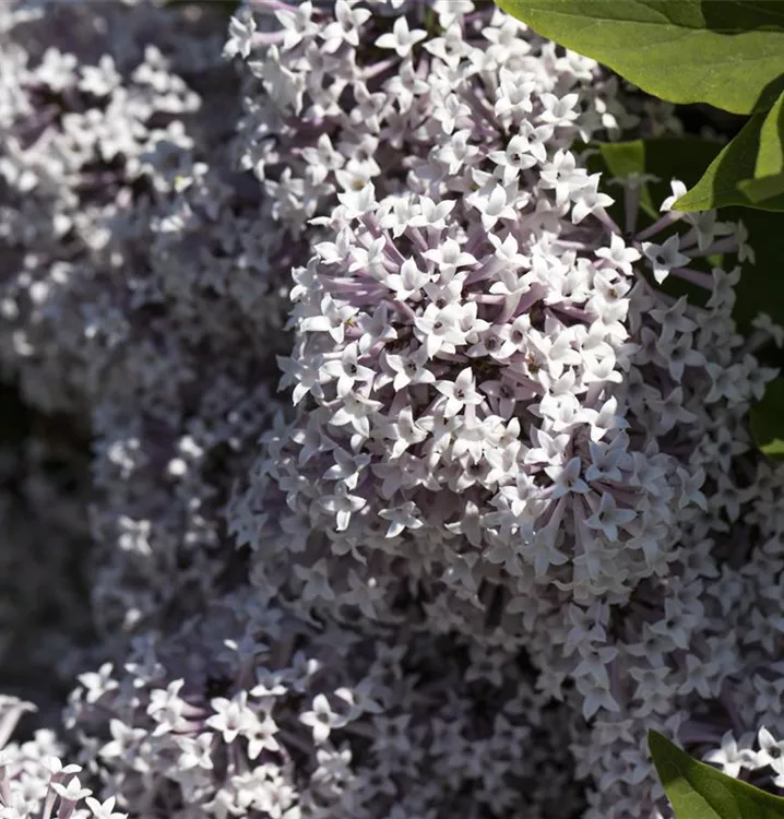 Die lilafarbenen Blüten des Meyer's Flieder erscheinen in Rispen von Mai bis Juni. Diese sind stark duftend.