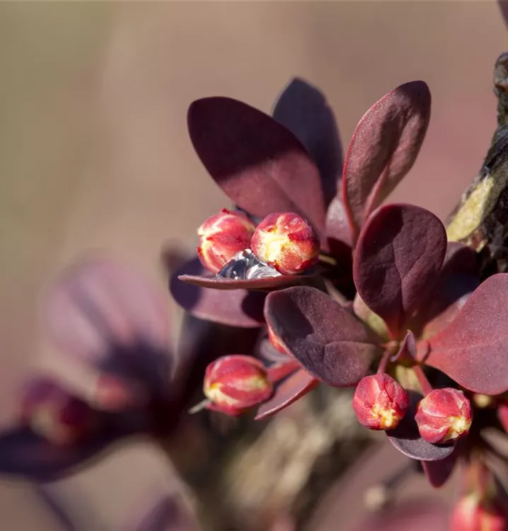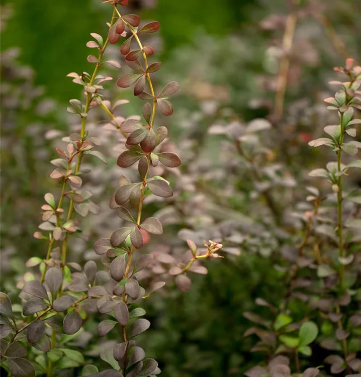 Besonders dekorativ sind die korallenroten Früchte von Berberis thunbergii. Diese erscheinen ab September. Haften sehr lange.