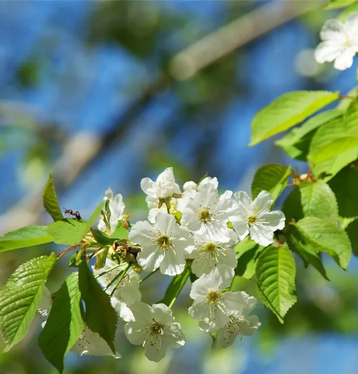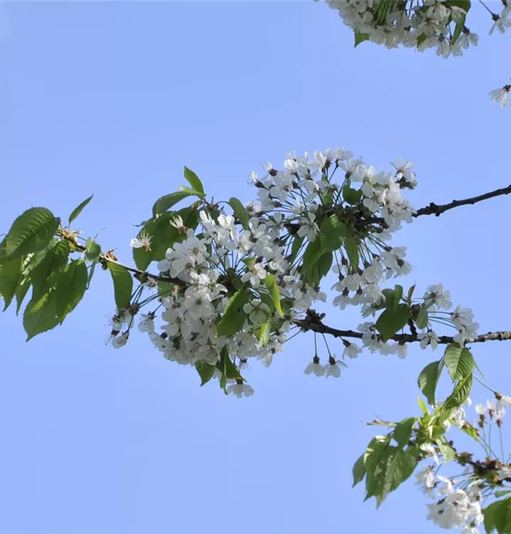 Sauerkirsche ist ein aufrecht wachsender Kleinbaum, der eine Höhe von 10 - 12 m und eine Breite von 4 - 6 m erreichen kann.