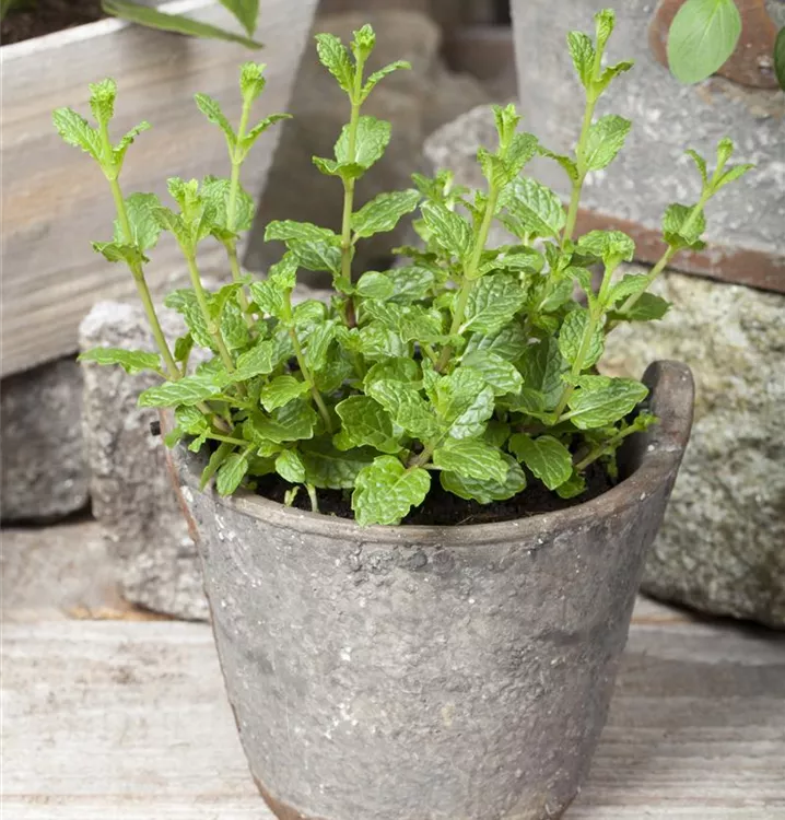 Zum Verzehr geeignet. Die hellgrünen, gezähnten Blätter sind eiförmig, lanzettlich und überzeugen mit erfrischendem, aromatischem, minzigem Geschmack.