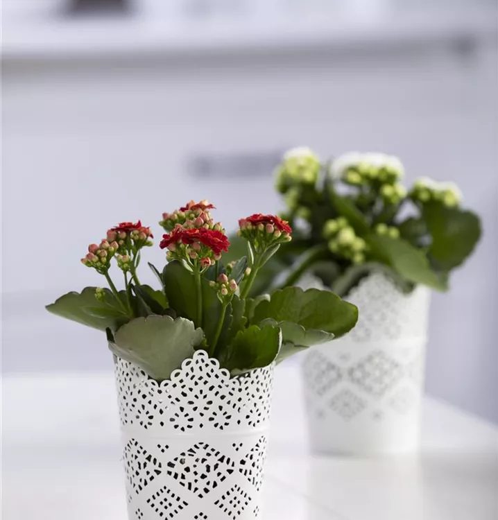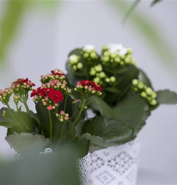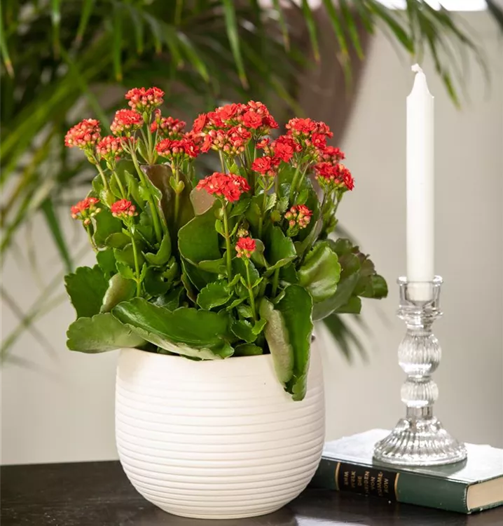 Das Flammende Käthchen (Kalanchoe blossfeldiana) ist eine pflegeleichte Pflanze, die rot blüht. Die sternförmigen Blüten erscheinen von Februar bis Juni in Dolden angeordnet. Bevorzugt wird ein heller Standort.