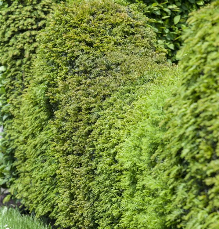 Die Heimische Eibe (Taxus baccata) ist ein Kleinbaum, welcher aufrecht wächst und gewöhnlich eine Höhe von ca. 15 m und eine Breite von ca. 10 m erreicht. Ihre nadelförmigen Blätter haben eine dunkelgrüne Färbung. Dekorative rote Zapfen zieren Taxus baccata ab September. Dieses Gehölz ist gut frostverträglich. Sie bevorzugt durchlässigen, kalkhaltigen, nährstoffreichen Boden in sonniger bis halbschattiger Lage.
