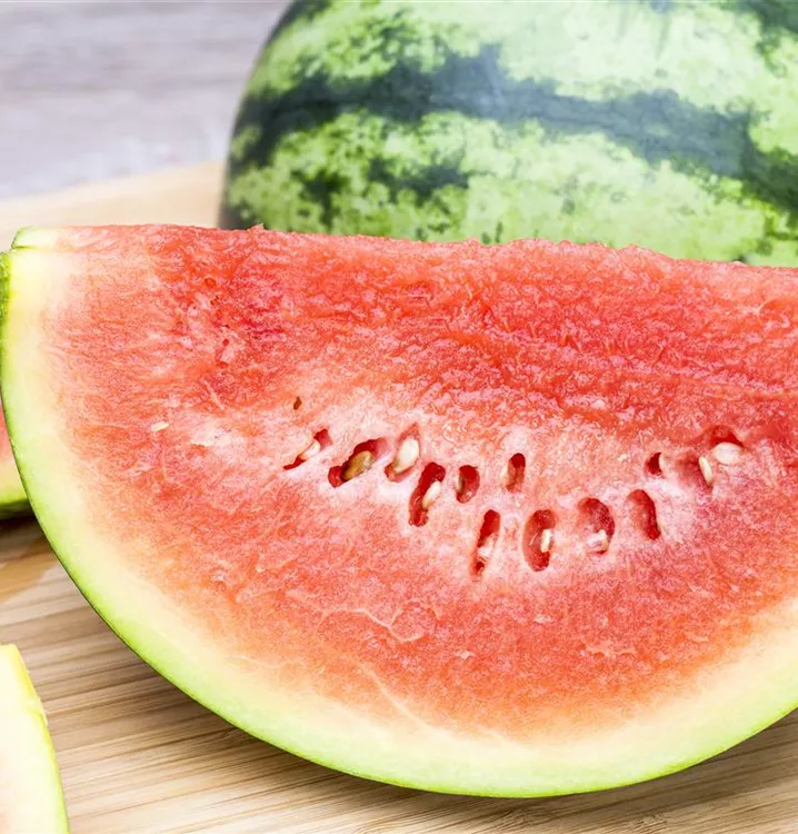 Die Wassermelone (Citrullus lanatus var. lanatus) bildet Früchte, die erfrischend schmecken und bereits ab Juli geerntet werden können. Für das optimale Wachstum der Wassermelone werden ein sonniger Standort und durchlässiger, nährstoffreicher Boden benötigt.