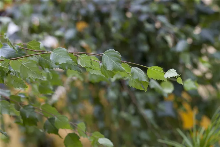 Die sommergrünen Blätter der Sandbirke sind hellgrün, dreieckig, rautenförmig, wechselständig, grob gesägt. Diese sind etwa 3 - 7 cm groß. Sandbirke zeigt sich leuchtend goldgelb im Herbst.