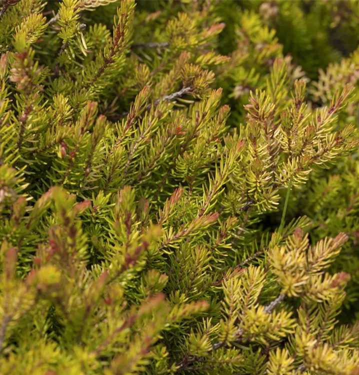 Schneeheide ist ein buschig, dicht und kriechend wachsender Zwergstrauch, der eine Höhe von 15 - 40 cm und eine Breite von 30 - 50 cm erreichen kann.