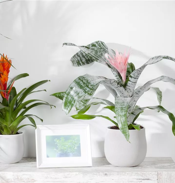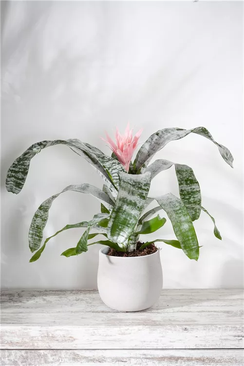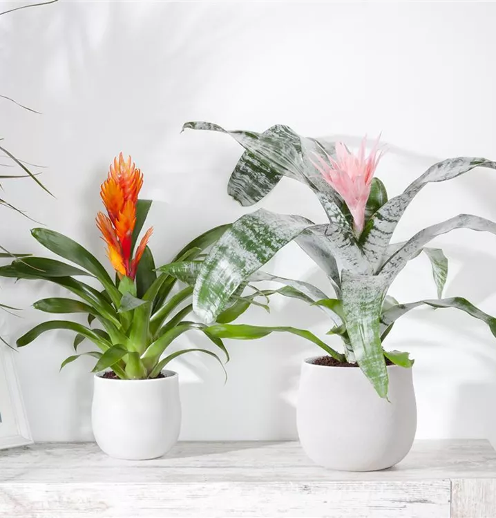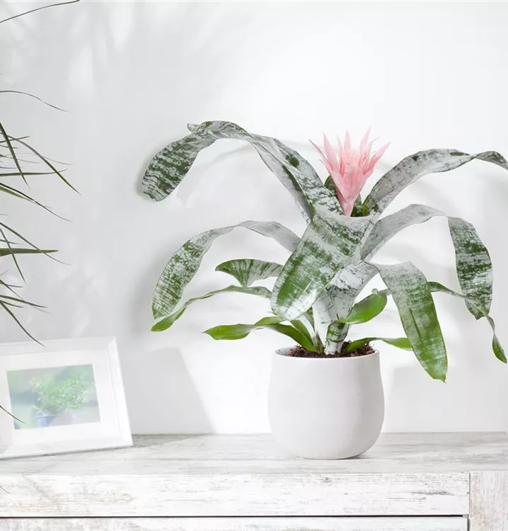 Die Lanzenrosette (Aechmea) blüht über Monate hinweg. Je nach Sorte, erscheinen die dekorativen Blüten in den Farben Weiß, Gelb, Orange, Rot, Rosa und Violett. Bevorzugt wird ein halbschattiger Standort und eine durchlässige Erde.