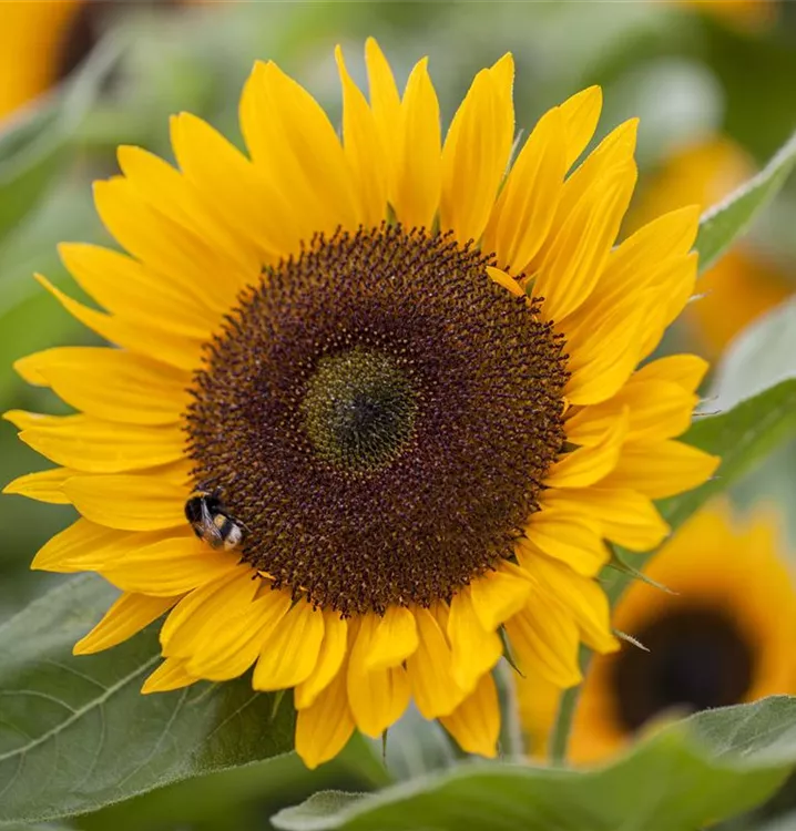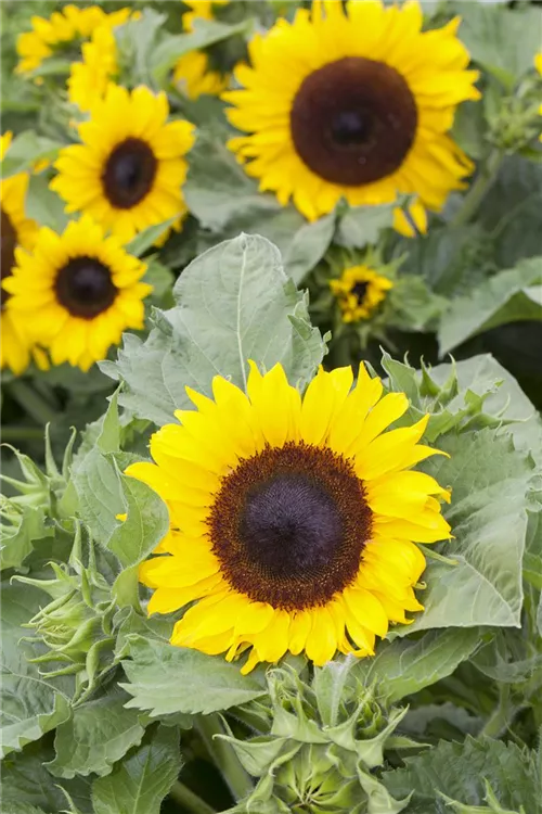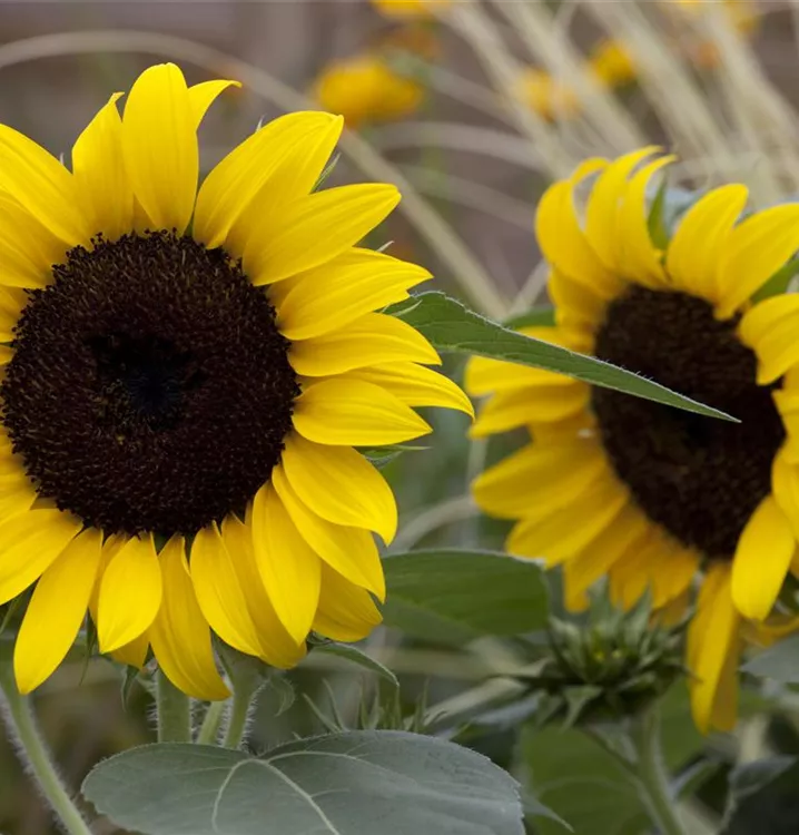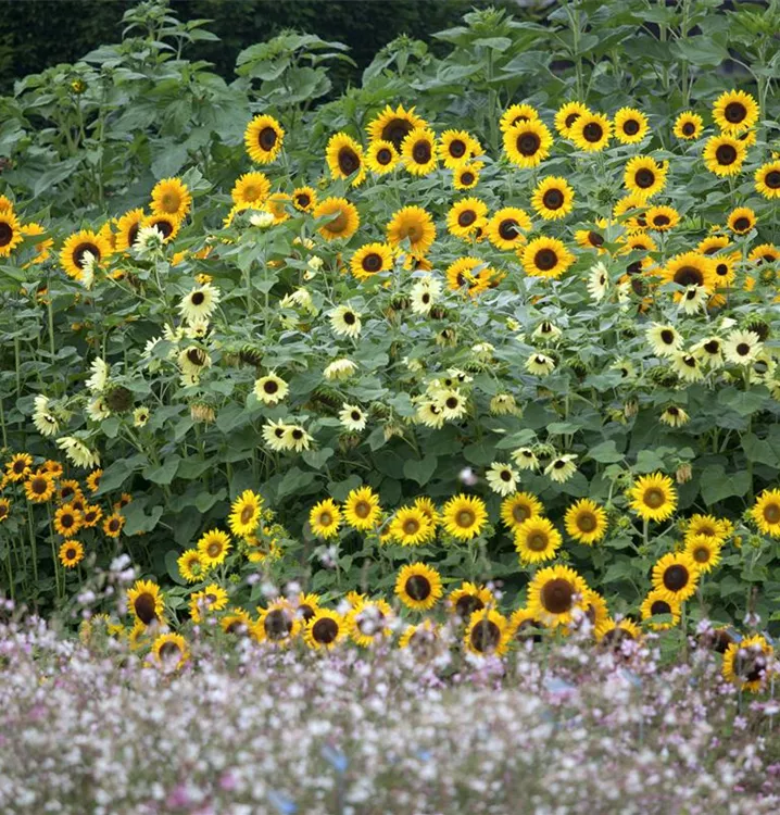 Helianthus annuus bildet während der gesamten Saison zahlreiche körbchenartige, gelbe Blüten. Diese werden etwa 10 - 40 cm groß.