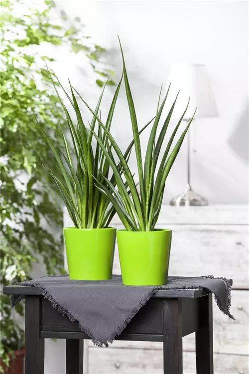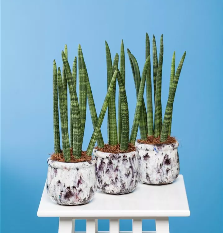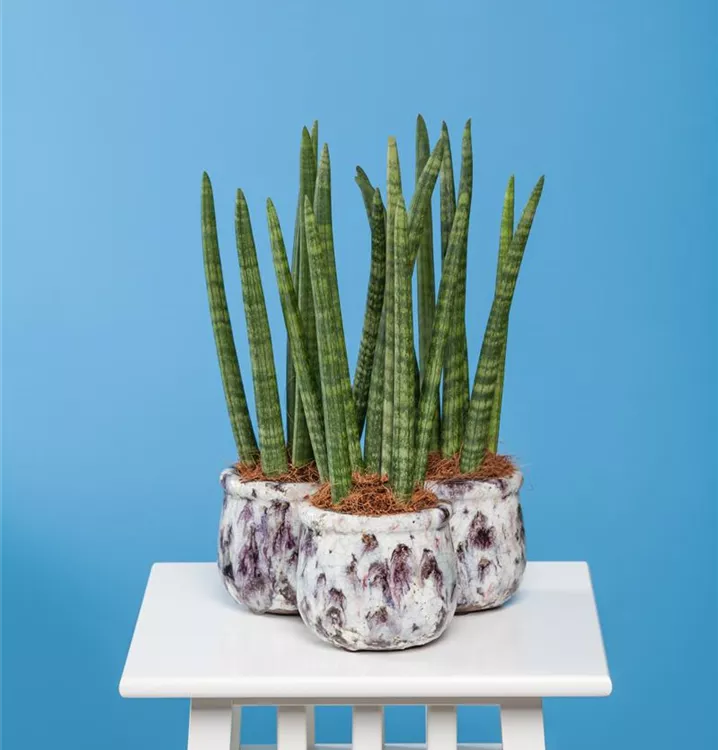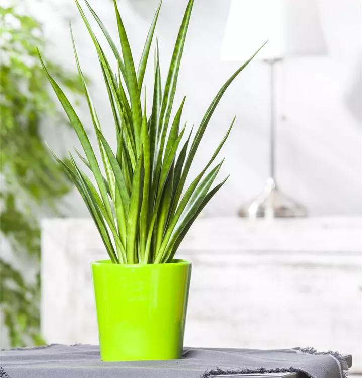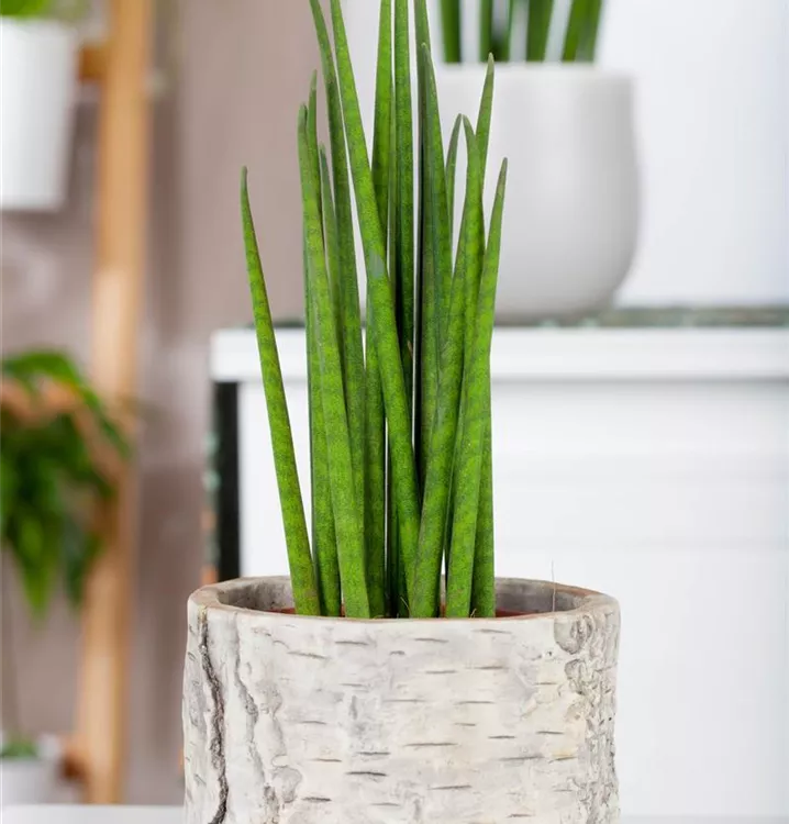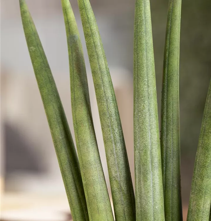 Der Bogenhanf (Sansevieria cylindrica) trägt gelb-grüne, dickfleischige Blätter. Diese aufrechte Pflanze gedeiht am besten an einem hellen Standort.