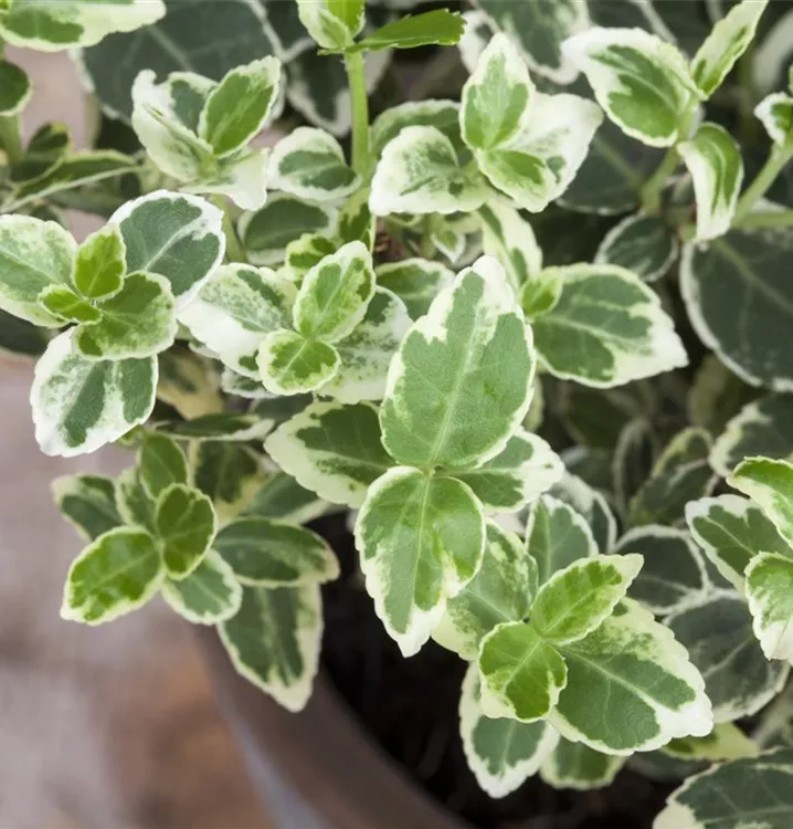 Die Weißbunte Kriechspindel 'Emerald Gaiety' weist eine gute Frosthärte auf.