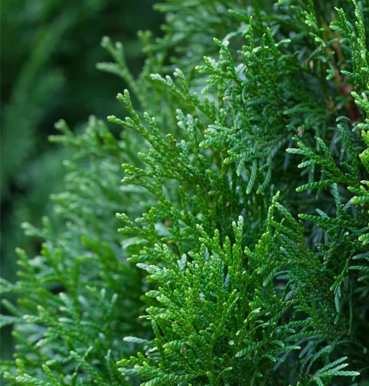 Der Lebensbaum 'Smaragd' ist immergrün. Seine Nadeln sind dunkelgrün, glänzend, schuppenförmig.