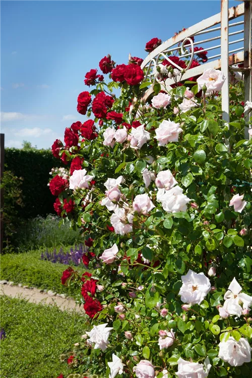 Nostalgie pur macht sich bei der Betrachtung alter Gärten breit. Diese werden meist von einem Spalier aus Kletterrosen dominiert. Schlingrosen haben sich nicht nur bei Romantikern ihren Platz zurückerobert. Wuchsfreudig erklimmen sie Bäume und Mauern, auch Hauswände sind kein Hindernis. Man denke nur an das märchenhafte Dornröschenschloss. Mit ihrem himmlischen Duft begleiten uns die Kletterrosen durch den Sommer. Im Herbst werden die Pflanzen zurückgeschnitten. Ein Winterschutz ist notwendig.