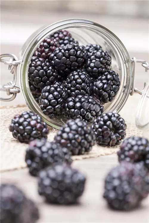 Die Brombeere (Rubus fruticosus) bildet schwarze Beeren. Diese sind aromatisch, fruchtig im Geschmack. Für eine ertragreiche Ernte ab August schaffen durchlässiger, humoser, nährstoffreicher Boden und ein sonniger bis schattiger Standort optimale Bedingungen. Auch ihre weißen Blüten sind eine schöne Erscheinung.