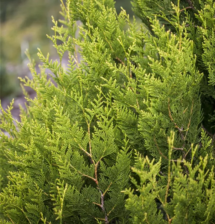 Der Riesen-Lebensbaum ist immergrün. Seine Nadeln sind mittelgrün, schuppenförmig.