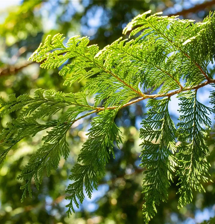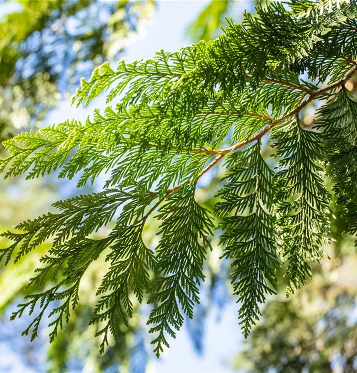 Der Riesen-Lebensbaum (Thuja plicata) ist ein Gehölz, welches locker wächst und gewöhnlich eine Höhe von ca. 15 m und eine Breite von ca. 6 m erreicht. Seine schuppenförmigen Blätter haben eine mittelgrüne Färbung. Dekorative braune Zapfen zieren Thuja plicata ab August. Dieses Gehölz ist gut frostverträglich. Er bevorzugt durchlässigen, nährstoffreichen, sauren Boden in sonniger bis halbschattiger Lage.