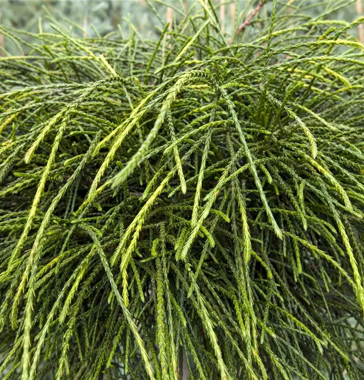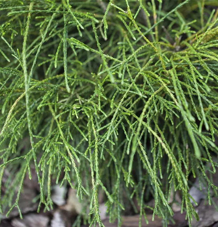 Thuja plicata 'Whipcord' ist ein Flachwurzler und bildet, je nach Boden, dicht verzweigte, fein verzweigte Wurzeln.