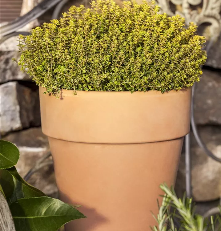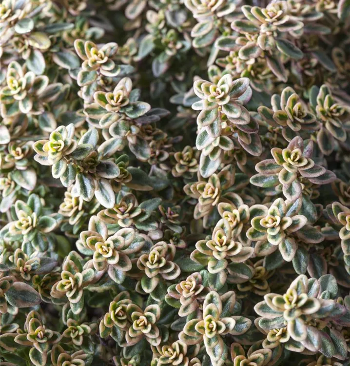 Der Gold-Thymian 'Aureus' (Thymus x citriodorus) ist eine Kräuterpflanze mit einem aromatischen Geschmack. Seine gelb-grünen Blätter sind eiförmig. Für das optimale Wachstum des Gold-Thymians 'Aureus' werden ein sonniger Standort und durchlässiger, nährstoffreicher Boden benötigt.