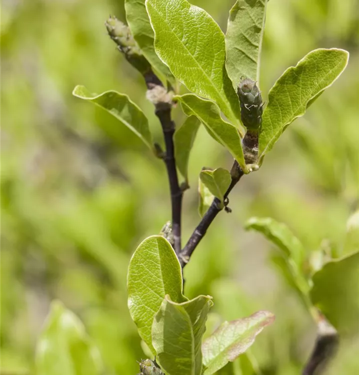 Die sommergrünen Blätter der Tulpen-Magnolie sind hellgrün, eiförmig, wechselständig, ganzrandig. Diese sind etwa 10 - 15 cm groß. Tulpen-Magnolie zeigt sich leuchtend hellgelb im Herbst.