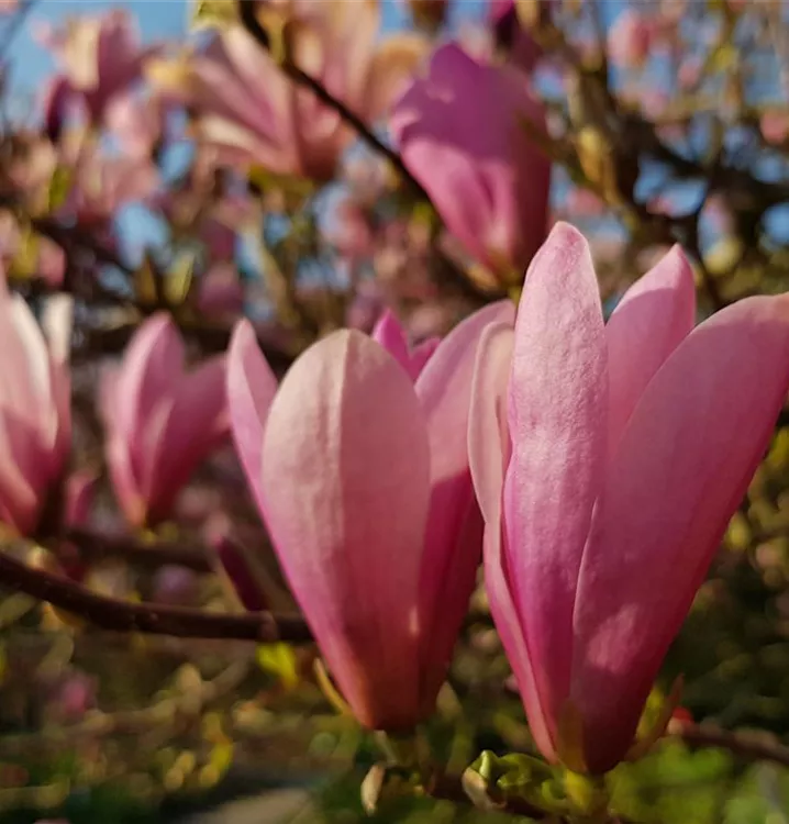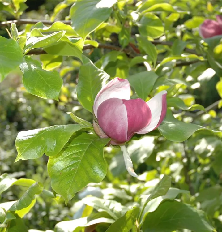 Tulpen-Magnolie ist ein ausladend, breit wachsender, malerischer Großstrauch. Sie erreicht gewöhnlich eine Höhe von 4 - 8 m und wird ca. 4 - 6 m breit. In der Regel wächst sie 25 - 30 cm pro Jahr.
