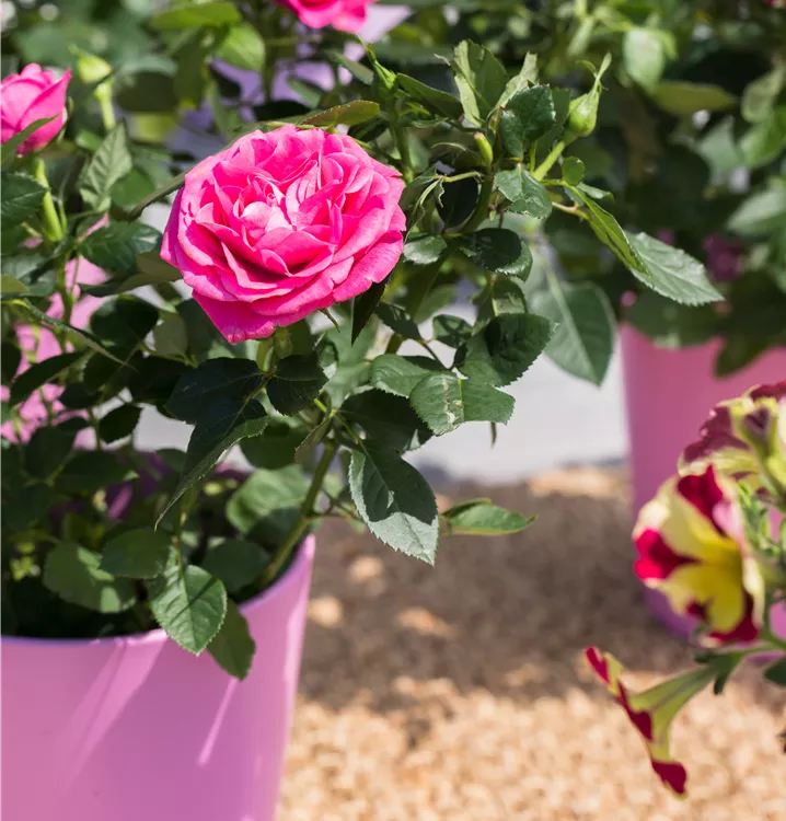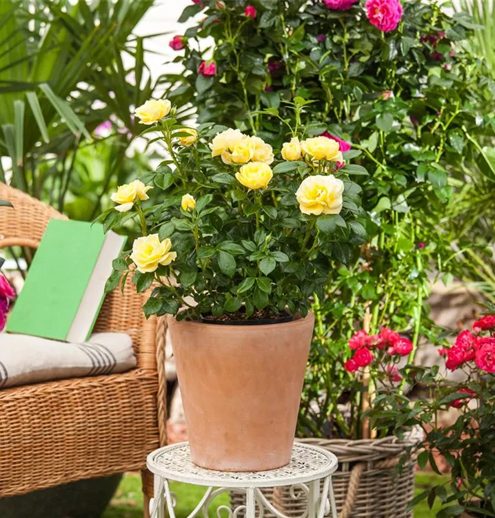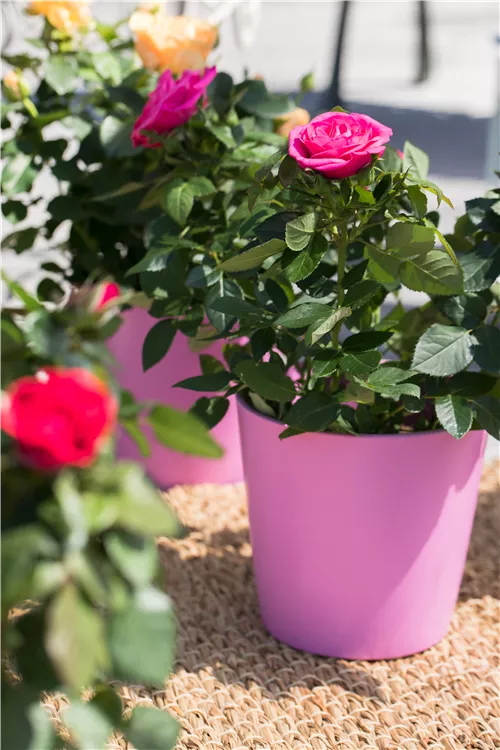 • Sind die Topfrosen verblüht, schneidet man die Pflanze zurück. Von Mai bis September können diese dann auf Balkon oder Terrasse erneut zur Blüte gebracht oder ins Bett gepflanzt werden.
