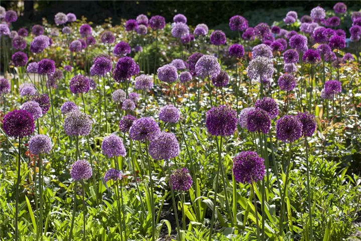 Die violetten Blüten des Riesenlauch erscheinen in Dolden von Juni bis Juli.