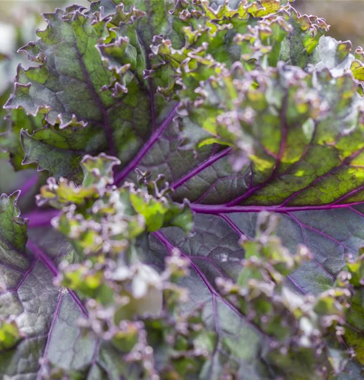 Zum Verzehr geeignet. Die dunkelgrünen, gewellten Blätter überzeugen mit würzigem Geschmack.