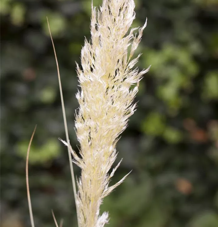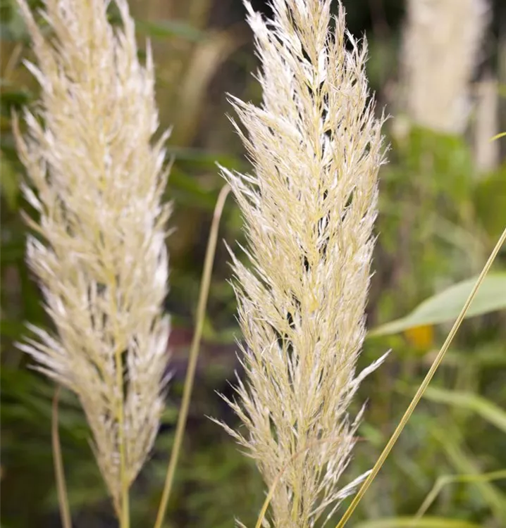 Die weißen Blüten des Pampasgras erscheinen in Rispen von September bis November.