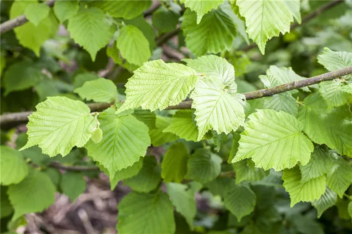Die sommergrünen Blätter der Waldhasel sind mittelgrün, rundlich, wechselständig, gesägt. Diese sind etwa 6 - 10 cm groß. Waldhasel zeigt sich leuchtend orangegelb im Herbst.