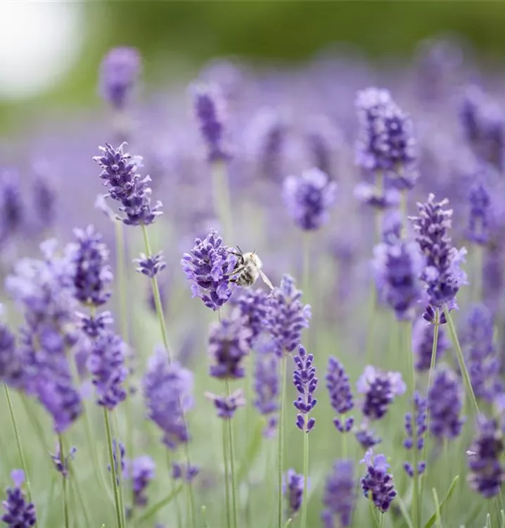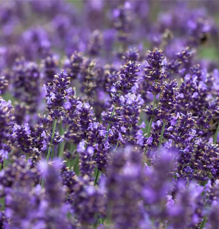 Der Echte Lavendel 'Hidcote Blue' (Lavandula angustifolia) ist eine buschige immergrüne Staude, die von Mai bis August blaue, rachenförmige, in Rispen angeordnete Blüten mit einem angenehmen Duft bildet. An einem sonnigen Standort mit durchlässigem, nährstoffreichem Boden erreicht er gewöhnlich eine Höhe von ca. 40 cm und wird ca. 30 cm breit. Der Echte Lavendel 'Hidcote Blue' ist gut frostverträglich.