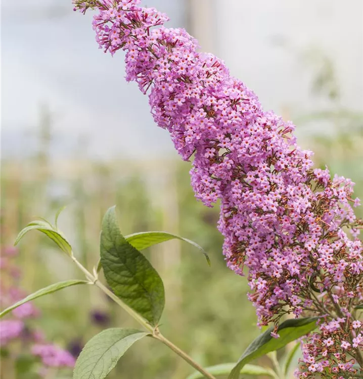 Der Sommerflieder (Buddleja davidii) ein aufrechter, lockerer, trichterförmiger Strauch, der, je nach Sorte, Blüten in verschiedenen Farben hervorbringt. Seine Rinde ist grau. An einem sonnigen Standort mit durchlässigem, nährstoffreichem Boden erreicht er gewöhnlich eine Höhe von ca. 4 m und wird ca. 4 m breit.