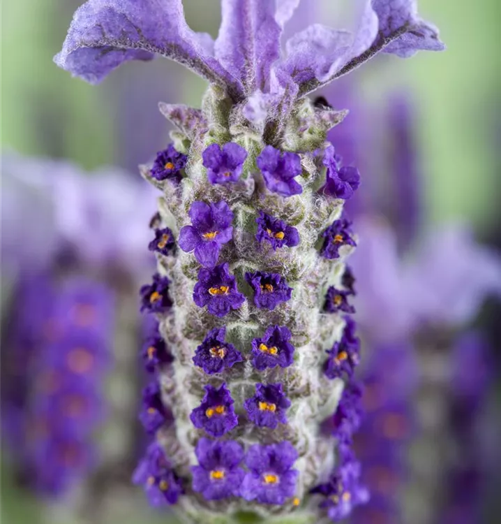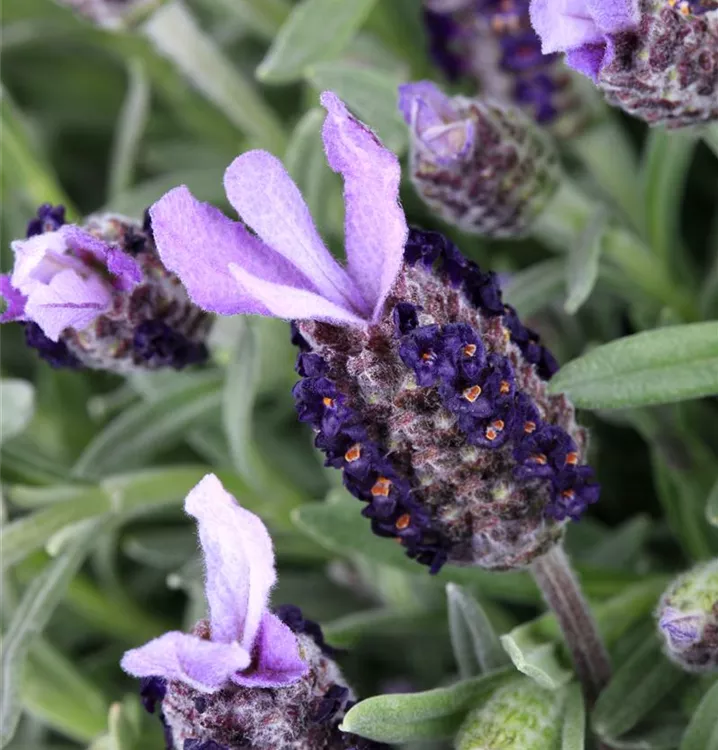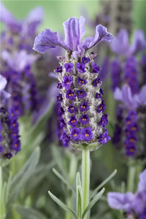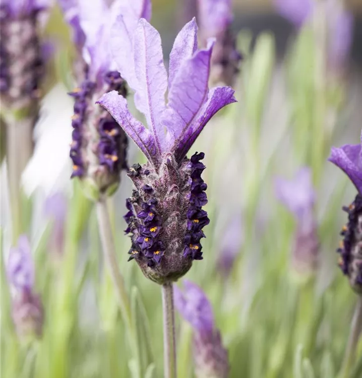Der Garten-Schopf-Lavendel (Lavandula stoechas) ist eine buschige wintergrüne Staude, die von Juli bis Oktober violette Blüten mit einem angenehmen Duft bildet. An einem sonnigen Standort mit durchlässigem, saurem Boden erreicht er gewöhnlich eine Höhe von ca. 80 cm und wird ca. 30 cm breit.