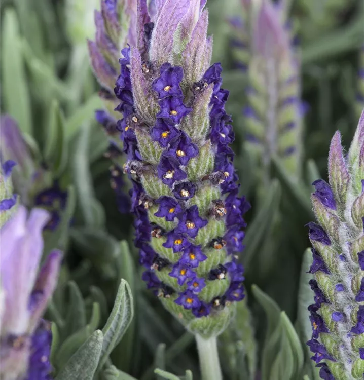 Lavandula stoechas bildet violette Blüten ab Juli. Diese verströmen einen angenehmen Duft.