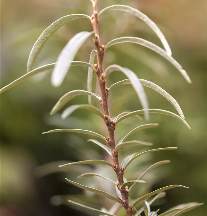Die Triebe von Hippophae rhamnoides sind bedornt.