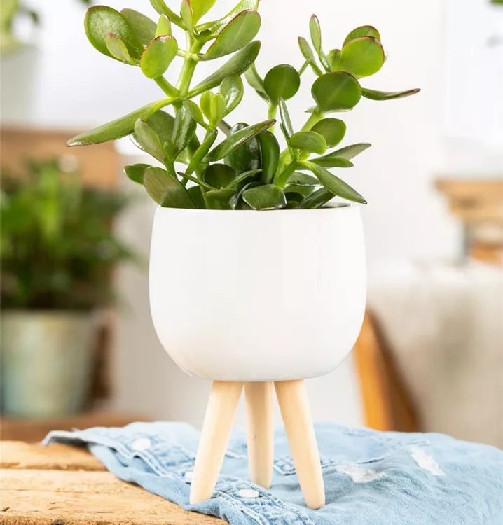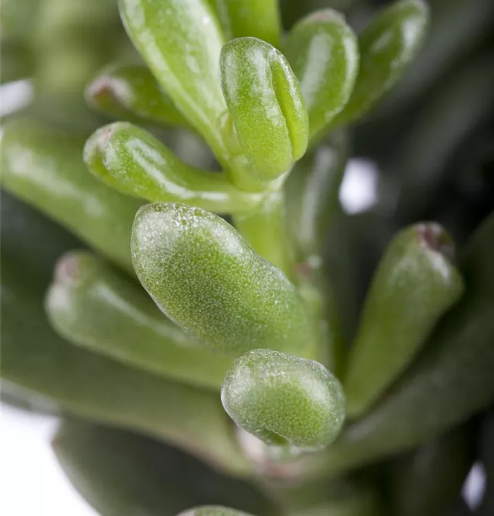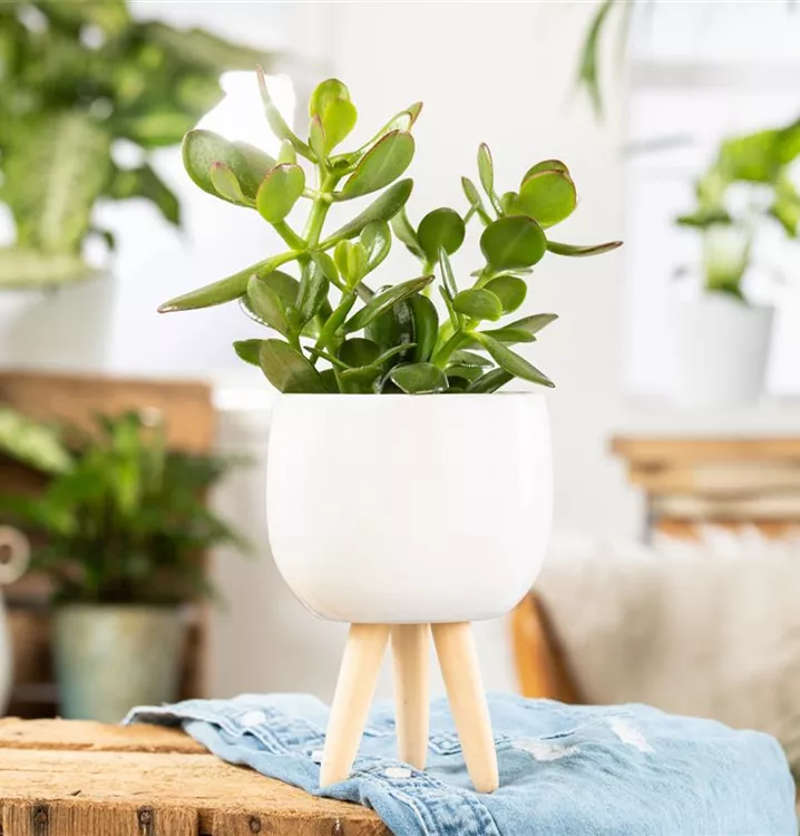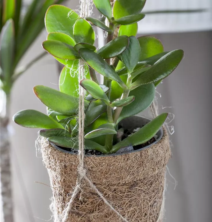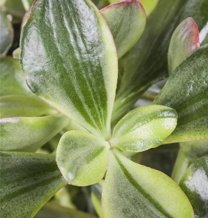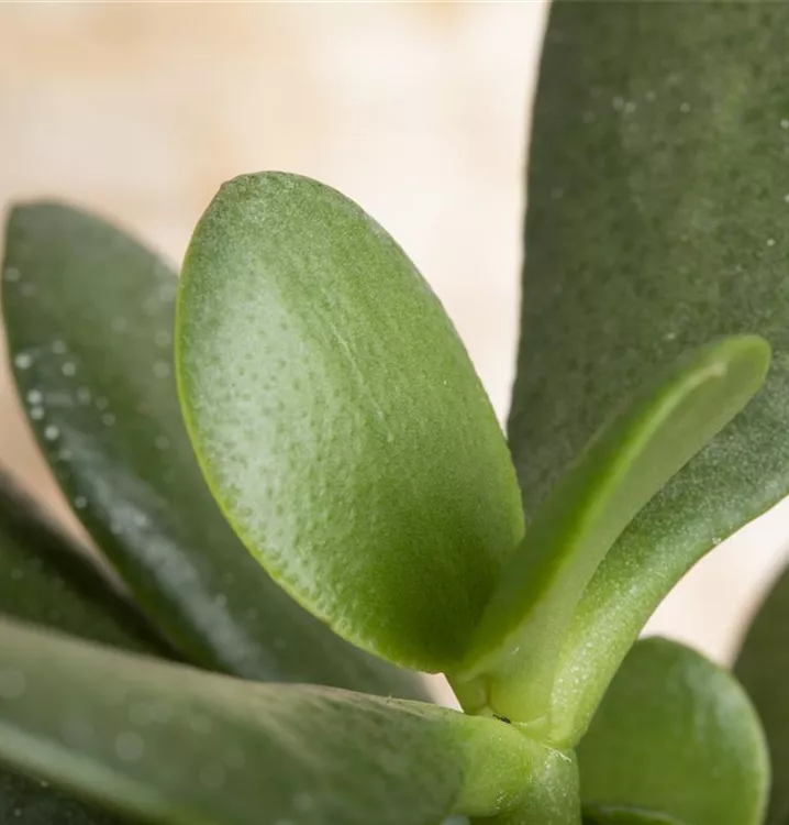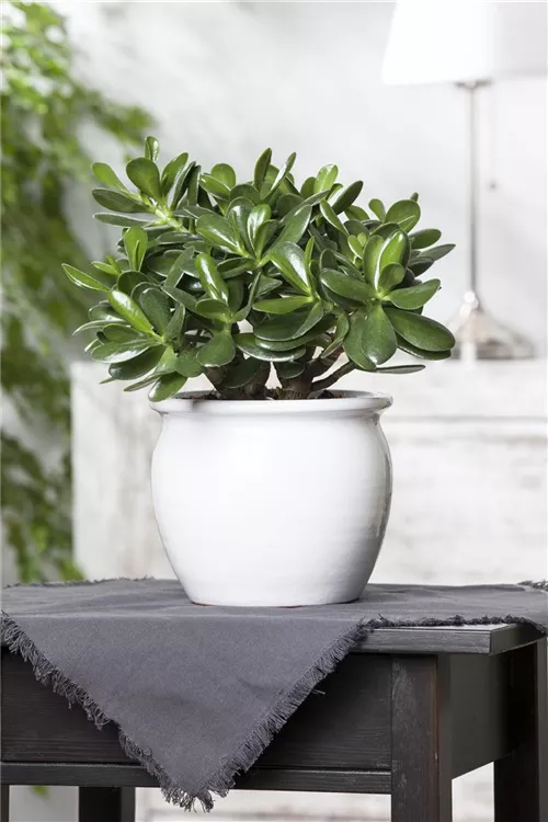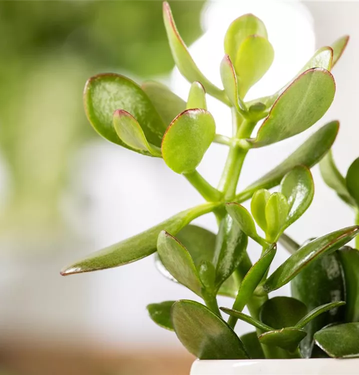 Der Geldbaum (Crassula ovata) besitzt dickfleischige Blätter. Diese aufrechte Pflanze gedeiht am besten an einem sonnigen Standort.